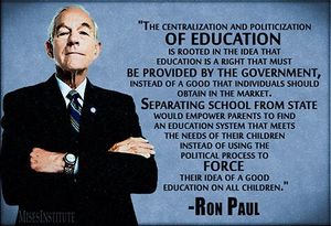 • «  Tout système éducatif contrôlé par les politiciens et les bureaucrates inculquera tôt ou tard la doctrine de la suprématie étatique. À partir du moment où cette doctrine a été intégrée par les individus, il devient extrêmement difficile de renverser le pouvoir qu'exerce l’État sur leur vie. Un tel système éducatif, étatique et obligatoire, est donc le parfait modèle d’État totalitaire. »