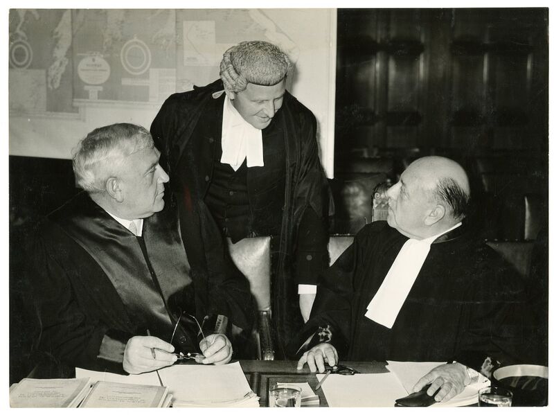 Maurice Bourguin (à droite) en 1951 avec Sven Arntzen (gauche) et Frank Soskice à la Haye