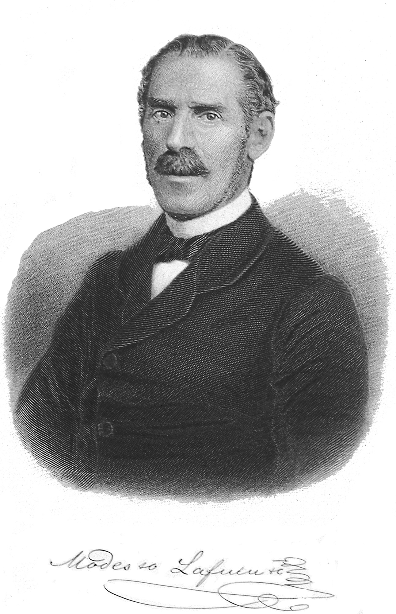 Modesto Lafuente, historien et journaliste espagnol du 19e. Gravure réalisée en 1883 et tombée dans le domaine public.