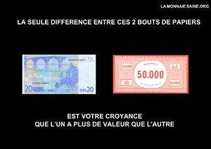 - Une monnaie papier, basée sur la seule confiance dans le gouvernement qui l’imprime, finit toujours par retourner à sa valeur intrinsèque, c’est-à-dire zéro. (Voltaire)