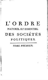- L'Ordre naturel et essentiel des societes politiques, 1767.