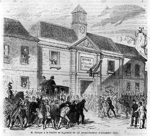 La majorité des représentants acceptent le fait accompli, environ deux cents, les libéraux essaient d'établir les voies d'une résistance légale. Ils votent la déchéance du président dans la mairie du Xe arrondissement avant d'être arrêtés, parmi eux Odilon Barrot, Alexis de Tocqueville, le comte de Falloux et Pierre-Antoine Berryer. Cette résistance légale de six heures contribue à donner l'idée que le coup d'État est en difficulté. Quelques dizaines de montagnards décident d'inciter le peuple à combattre. Le 3 décembre, les premiers coups de feu éclatent. Les barricades se multiplient le 4 décembre et la répression se fait brutale. Paris est maté mais la province résiste à son tour, surtout dans le Sud-Est, touchant les campagnes plus que les villes. Mais la République était morte. Le plébiscite du 20 décembre 1851 approuve Louis-Napoléon par 7 millions et demi de oui contre 640 000 non.
