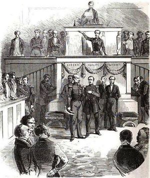 - L'Assemblée constituante de 1848 a de l'honnêteté et du courage. Son malheur est d'être médiocre, ce qui la fait hostile aux grandes intelligences qu'elle contient. L'éloquence vraie, mâle et ferme l'étonne et la hérisse. Le beau langage lui est patois. Elle est presque entièrement composée d'hommes qui, ne sachant pas parler, ne savent pas écouter. Ils ne savent que dire et ils ne veulent pas se taire. Que faire ? Ils font du bruit. […] Je contemple souvent en rêvant l'immensité de la salle et la petitesse de l'Assemblée. (Victor Hugo, Choses vues)
